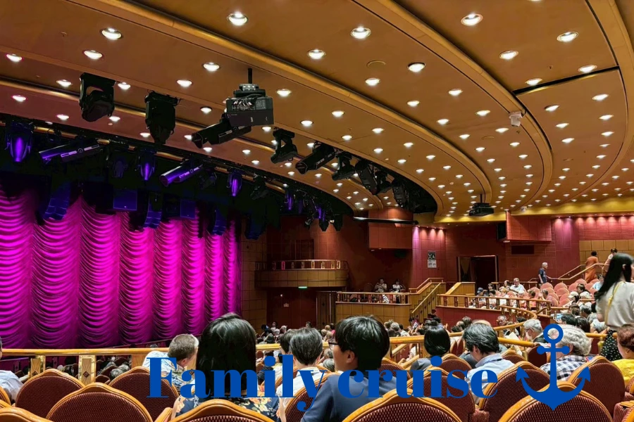 乗船前に見た口コミで「ロックバイオリニストのショーはおもしろい」と聞いていたので、乗り気のしない家族を引っ張ってプリンセスシアターへやってきました。